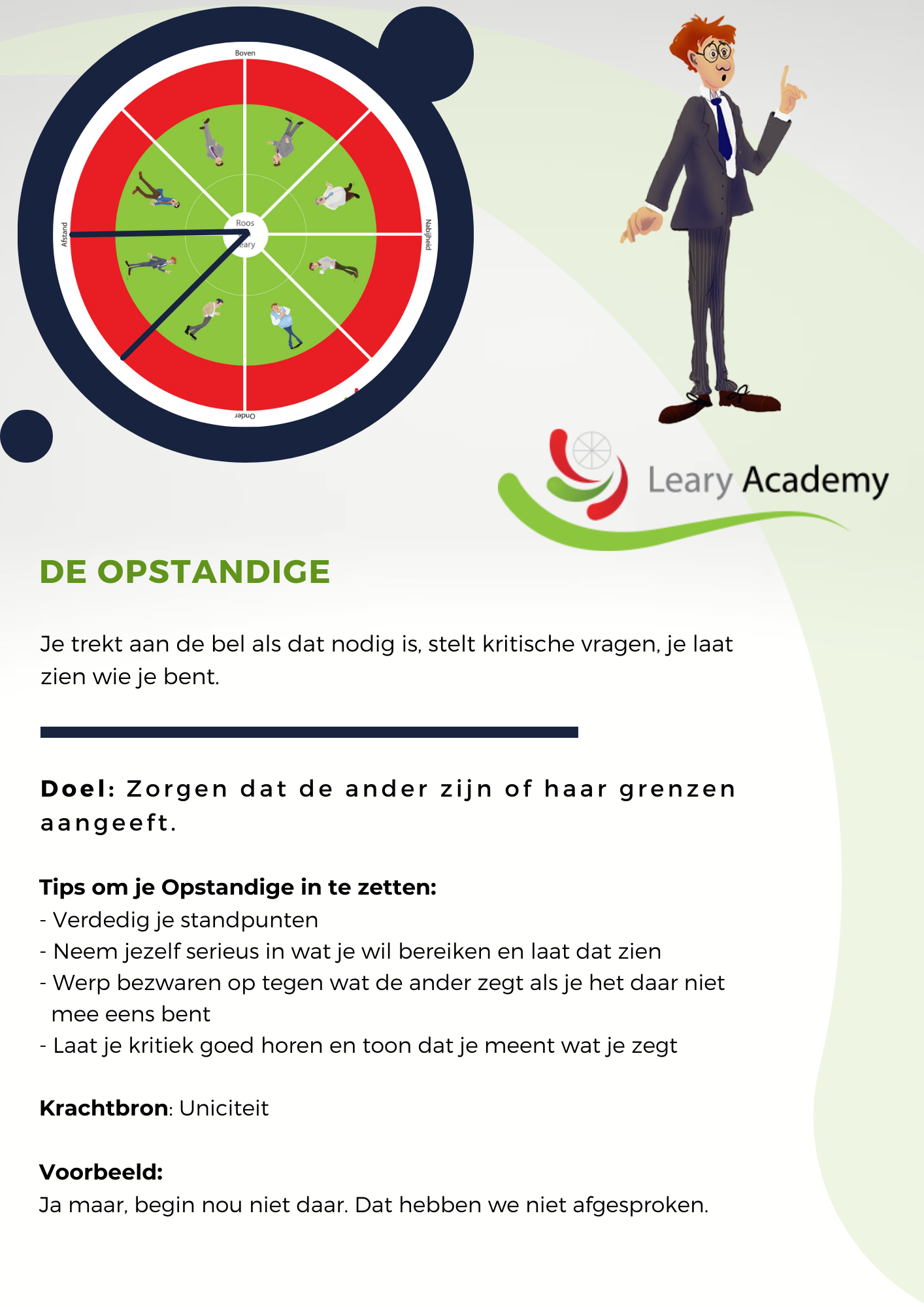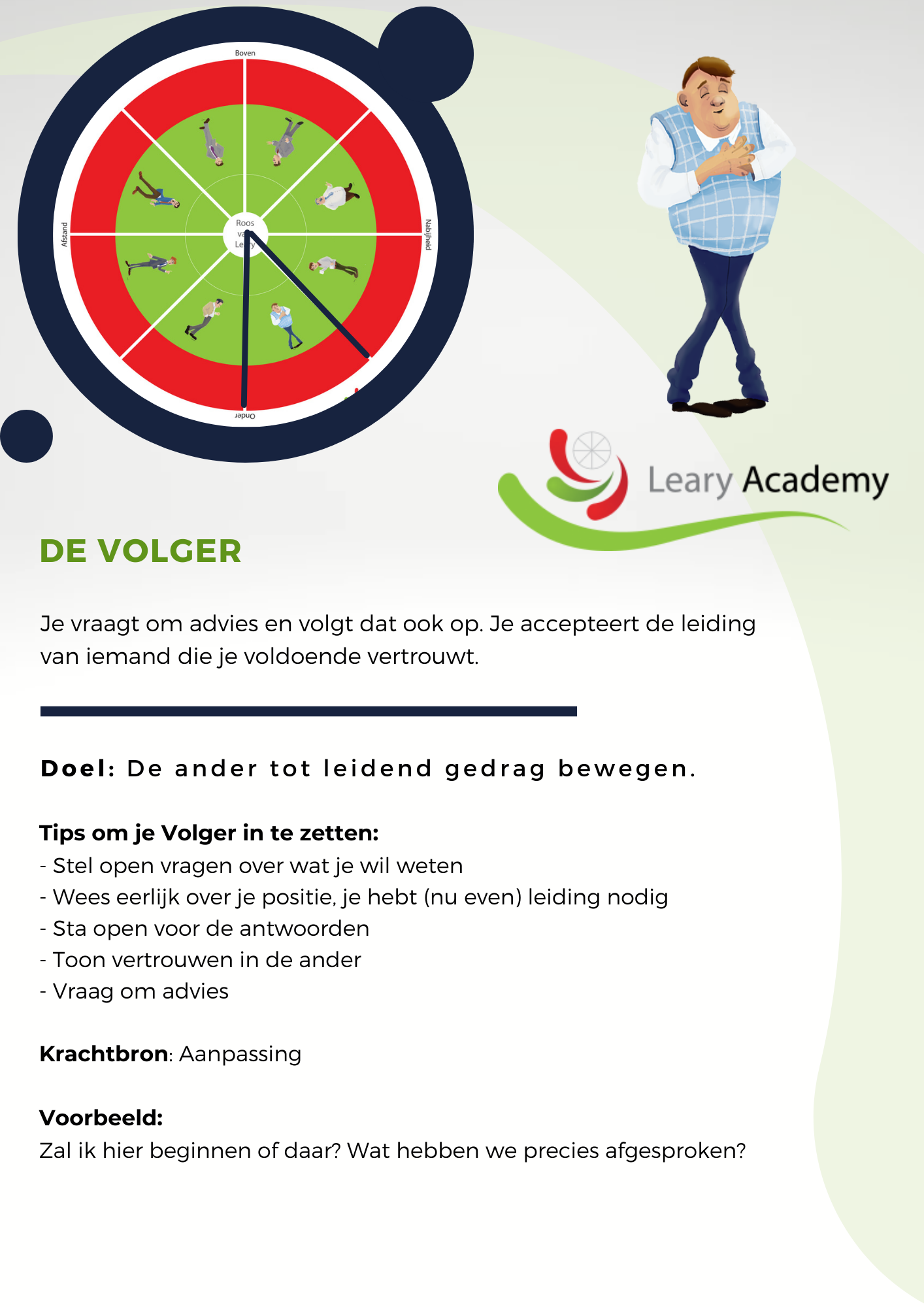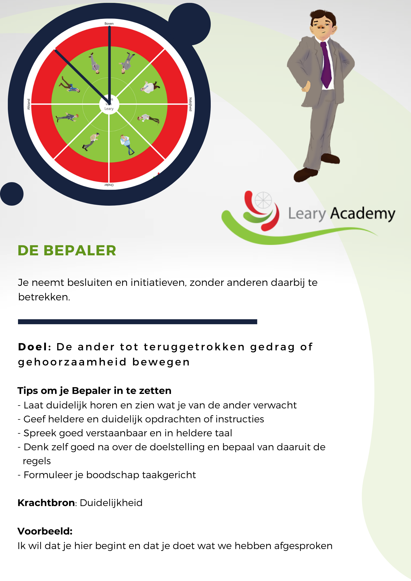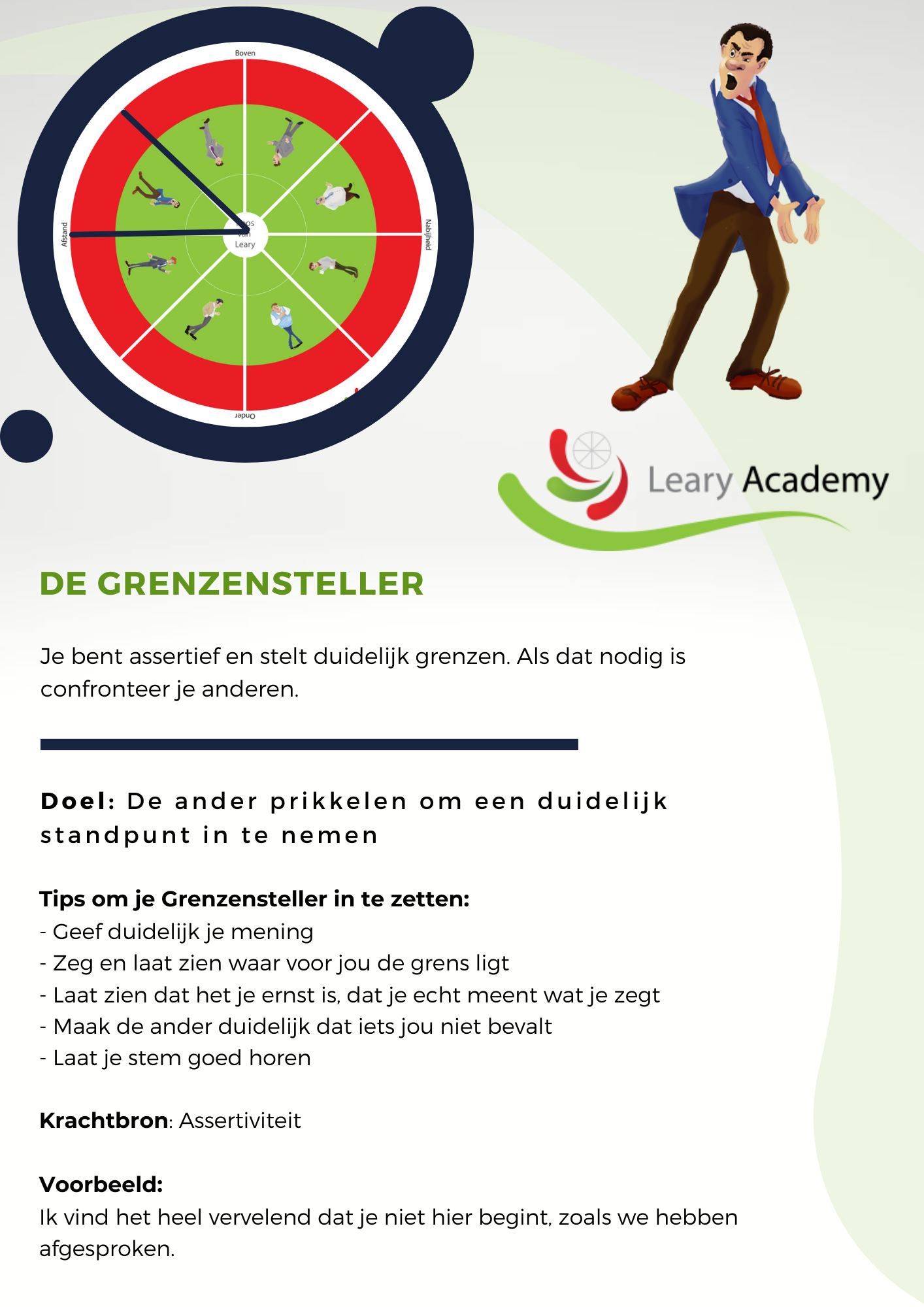 De Roos van Leary staat bekend als een van de meest gebruikte methodieken bij het leren van effectief beïnvloeden en het begrijpen van gedrag. Je hebt last van het gedrag van een ander, en jij kan zelf iets anders doen om de ander mee te laten bewegen in een richting die voor jezelf prettiger is en door de ander wordt geaccepteerd. Hoe je dat doet, kan je leren op www.roosvanleary.com